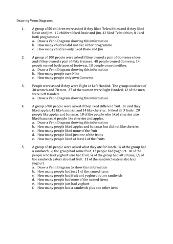 Worksheets attached for printing out of examples and questions. Venn diagrams worksheets differentiated 3 levels. Exclusive pdf worksheets on completing venn diagrams based on a given set of data are also available for practice. A complete lesson introducing venn diagrams suitable for ks2 ks3 ks4 students.